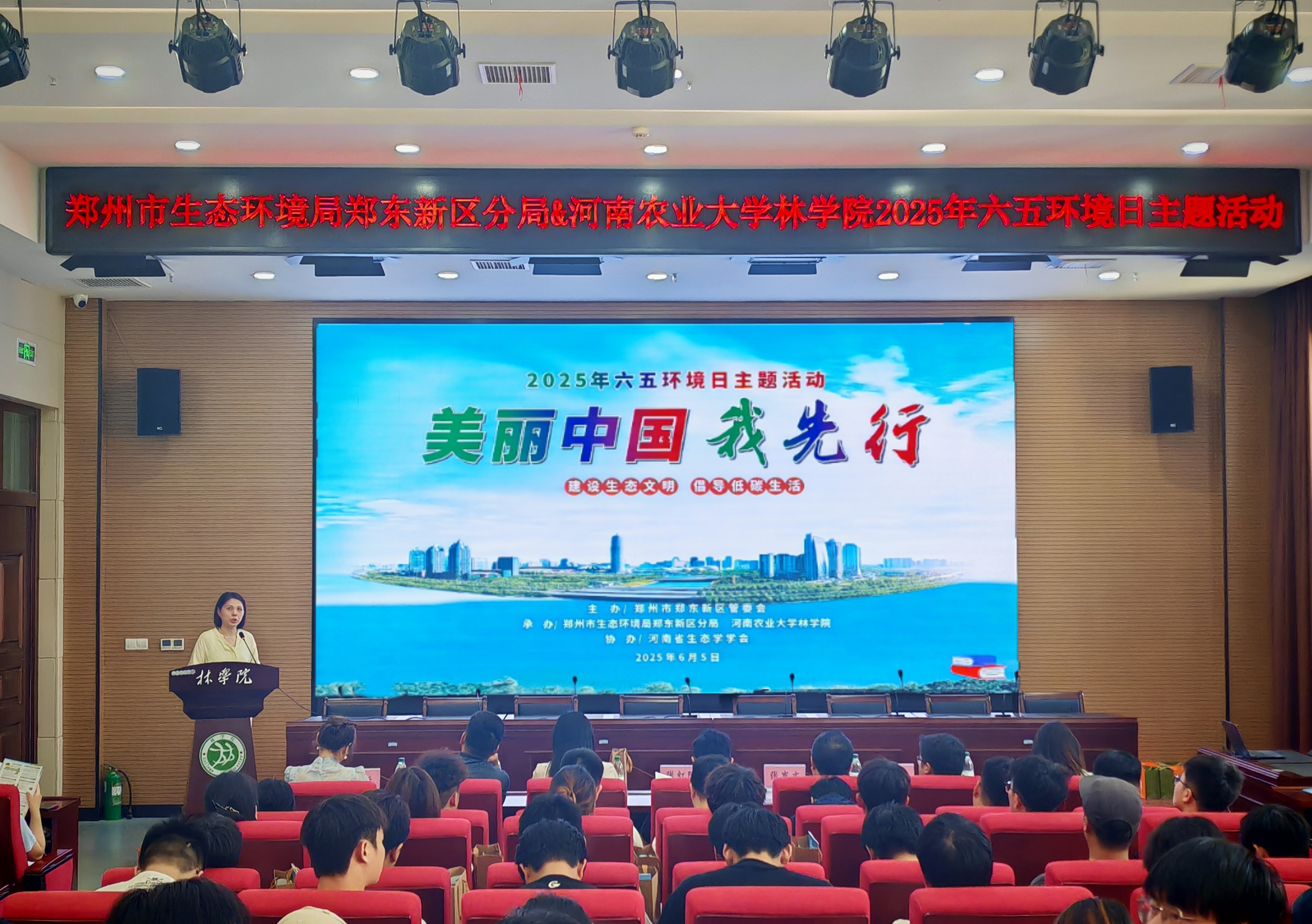 本网讯(通讯员 马蒙恩)6月5日,由郑州市东区管委会主办,巨乳a片 与郑州市生态环境局郑东新区分局承办的“美丽中国我先行”——2025年六五环境日主题活动在龙子湖校区力行楼举行。郑州市生态环境局郑东新区分局局长张红阳、巨乳a片 党委书记化青报、院党委副书记王娟及学院师生代表参加本次活动。
