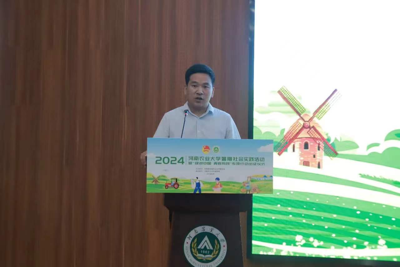 教授郭二辉、2023级旅游管理专业学生刘梓铭分别代表指导教师和实践学生发言。他们表示,近年来,学校积极响应团中央“三下乡”社会实践的号召,高度重视暑假社会实践工作。而作为即将参与社会实践的大学生,要做到三点要求。一是要甘心奉献,要做勇于吃苦的“实践人”。二是要学以致用,要做知行合一的“实践人”。三是要牢记使命,要做讲好“故事”的“实践人”。同时他们也表示将在此次社会实践中践行弘农爱国的农大精神,用扎实的专业知识描绘乡村振兴“新图景”,交出实干“好答卷”,用自身所学回报祖国和人民,为建设社会主义现代化强国贡献力量。