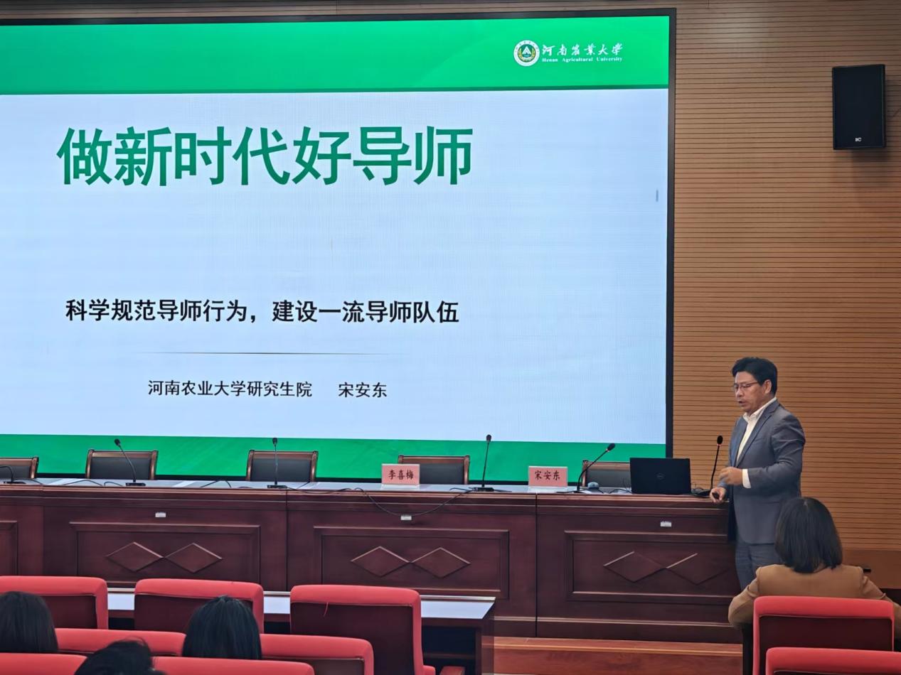 此次培训会特邀我校研究生院院长宋安东教授作专题报告。宋安东以《做新时代好导师》为题,从“要培养什么样的研究生”、“什么是导师”、“如何做一名导师”三个方面为新晋研究生导师做培训辅导。