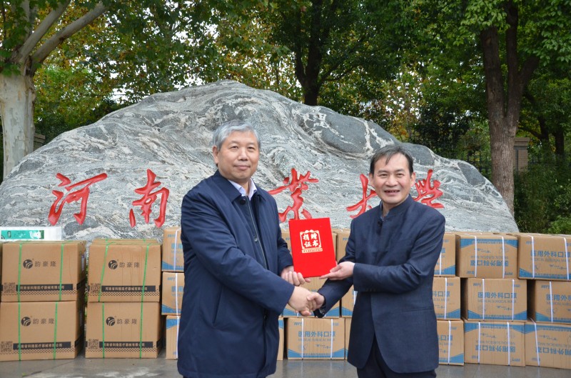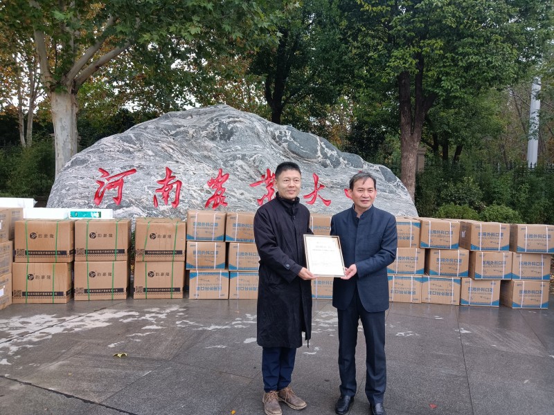 范国强代表学院接受捐赠,对民盟河南省委生态文明建设工作委员会的爱心捐赠表示衷心感谢。他表示,郑州疫情发生以来,在学校统一领导下,学院全力做好疫情防控工作,确保静态管理下师生的后勤保障和安全。在这个特殊时刻收到民盟河南省委生态文明建设工作委员会捐赠的防疫物资,让学院师生倍感温暖,深受感动,学院将用好这批捐赠物资,使其发挥最大的作用。