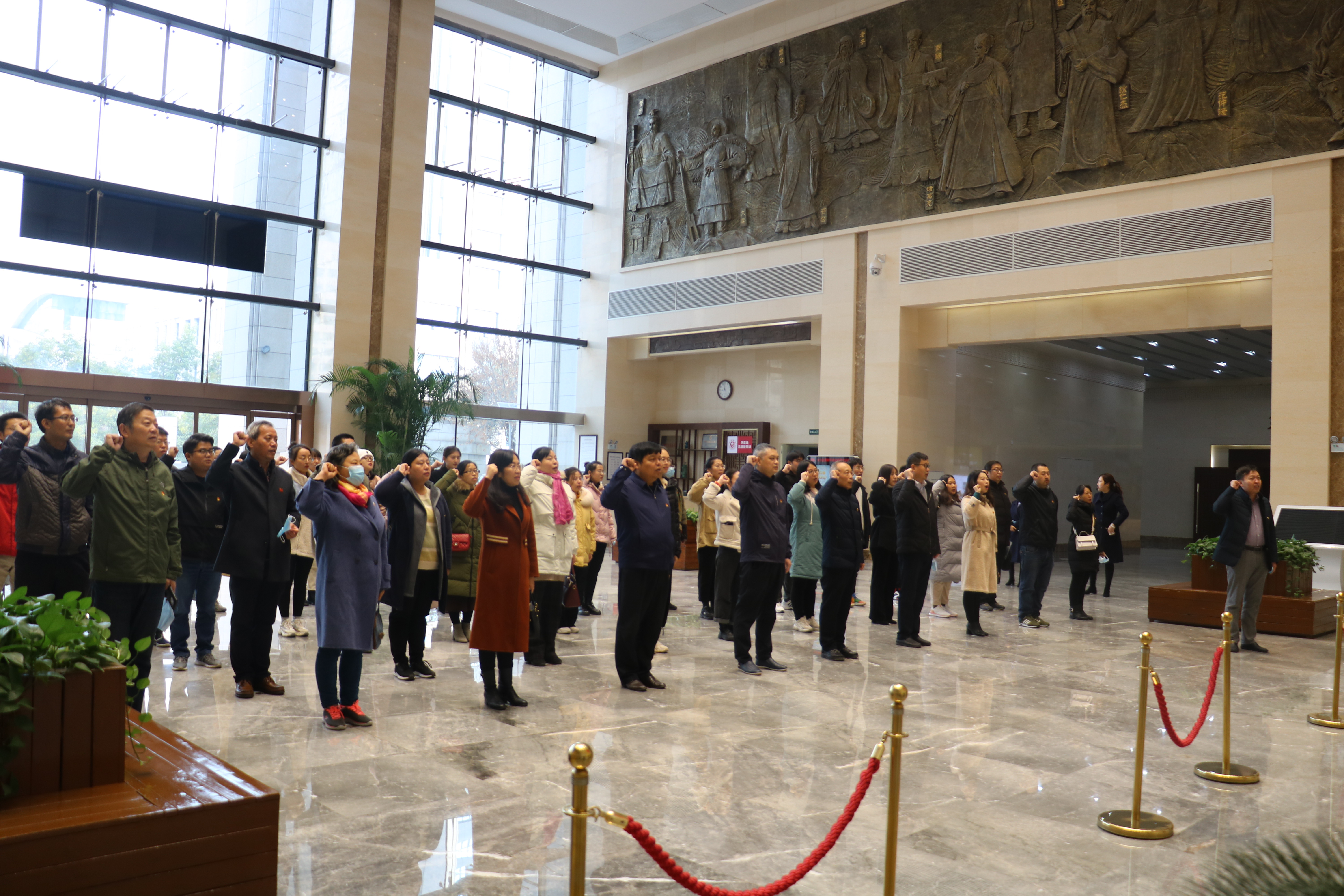 在讲解员的带领下,大家依次参观了河南省廉政文化教育中心的中国古代廉政文化展、中国共产党党风廉政建设展、新时代河南全面从严治党成果展。在参观过程中,通过重温入党誓词,观看视频、图片、文字等方式,学习领悟党的发展史、新中国成立史、及党的作风建设历程,引导大家认清腐败本质、培养廉洁意识、弘扬清风正气、陶冶道德情操,给师生党员上了一堂形象、生动、直观的反腐倡廉警示教育课。
