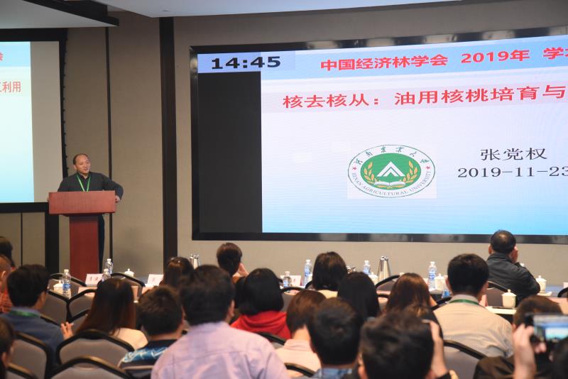 11月23日至24日,中国林学会经济林分会2019年学术年会在郑州召开。会议由中国林学会经济林分会主办,国家林业和草原局泡桐研究开发中心承办,河南农业大学巨乳a片 协办。中国林学会副秘书长沈瑾兰、中国林科院副院长孟平、中国林学会经济林分会理事长谭晓风、国家林业和草原局林改司调研员高均凯等出席会议。来自全国各省的259名代表参加了会议。 大会共组织45场学术报告,代表们结合经济林的科研进展和生产实际,紧密围绕大会主题“经济林产业高质量发展”的热点、难点和重点问题,广泛而深入地开展了学术研讨和经验交流。巨乳a片 3名教师做了主题报告、4名研究生做了“研究生论坛”专题报告,主题报告分别是刘震教授的“山桐子资源开发利用前景”、张党权教授的“核去核从:油用核桃培育与加工利用”、李继东副教授的“基于多组学技术枣疯病发生机理研究”。 经济林是我国林业产业中的重要方向,2017年由张党权教授牵头在巨乳a片 林学一级学科下建设经济林学科方向,并积极申请与建设经济林本科专业,为河南及全国经济林产业发展提供科技和人才支撑。