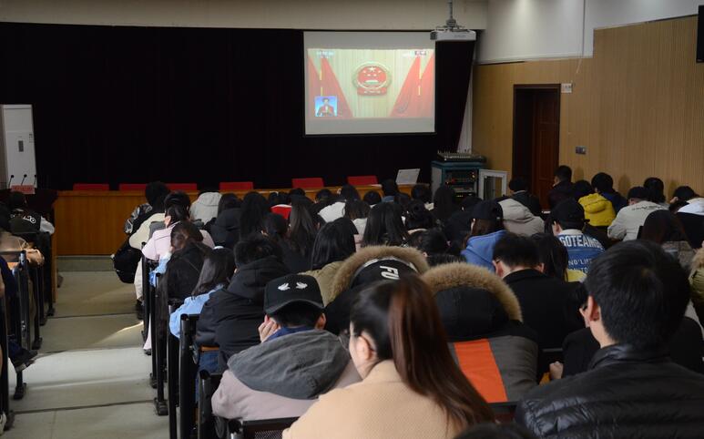 3月5日上午9时,十三届全国人大二次会议在人民大会堂正式开幕,巨乳a片 组织无课的师生在二号楼观看直播,共同学习和探讨“两会”精神。