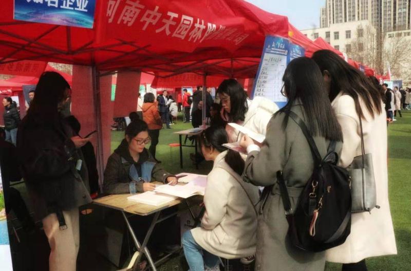 3月8日,巨乳a片 于文化路校区田径场组织参加了学校2019届毕业生供需双选会。校党委副书记、工会主席李成吾,副校长尹新明,校纪委书记游舸、副校长尚富德莅临现场,院党委书记郑东方、副书记张华、副院长孔德政深入双选会现场,与招聘单位负责人和毕业生亲切交谈,深入了解毕业生就业动态,推动双选会工作顺利进行。