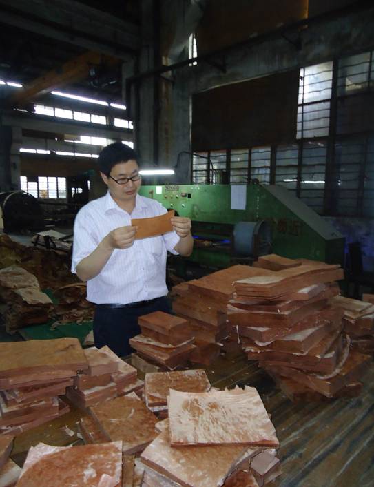 彭万喜在检查公司装饰材料