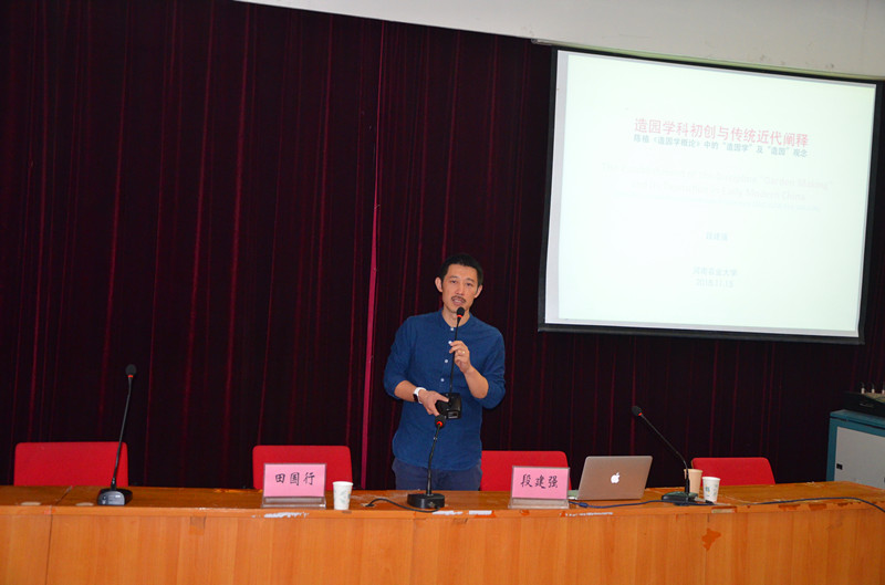 师生作了题为 “造园学科初创与传统近代阐释”的学术报告,园林系相关专业师生到场聆听报告会。会议由田国行主持。