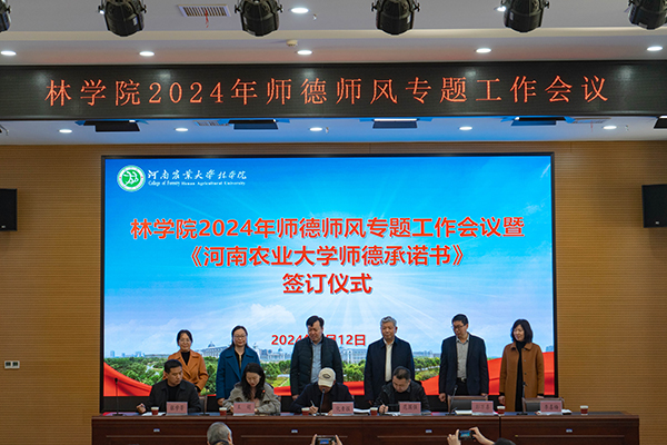签订仪式上,林学系、旅管系、环境系、生态系4位党支部书记作为教师代表签订《河南农业大学师德承诺书》,与会全体教职工统一执笔,在师德承诺书上写下了自己的名字。