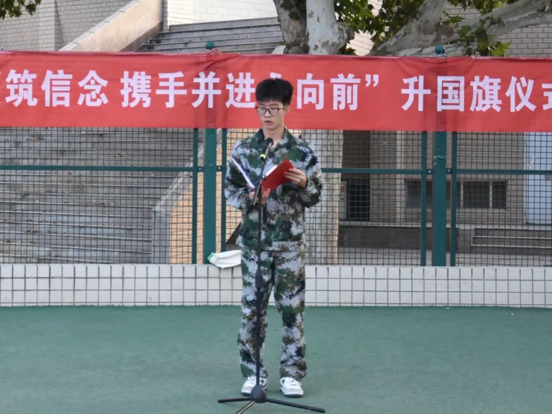 升旗完毕,由新生代表——环工23-2班的冯梦坤同学进行演讲。他用真诚激情的话语,号召我们挑战自我,成为更好的自己。既要怀抱理想又要脚踏实地,既要敢想敢为又要善作善成,将个人理想与民族和国家的复兴大任融为一体。