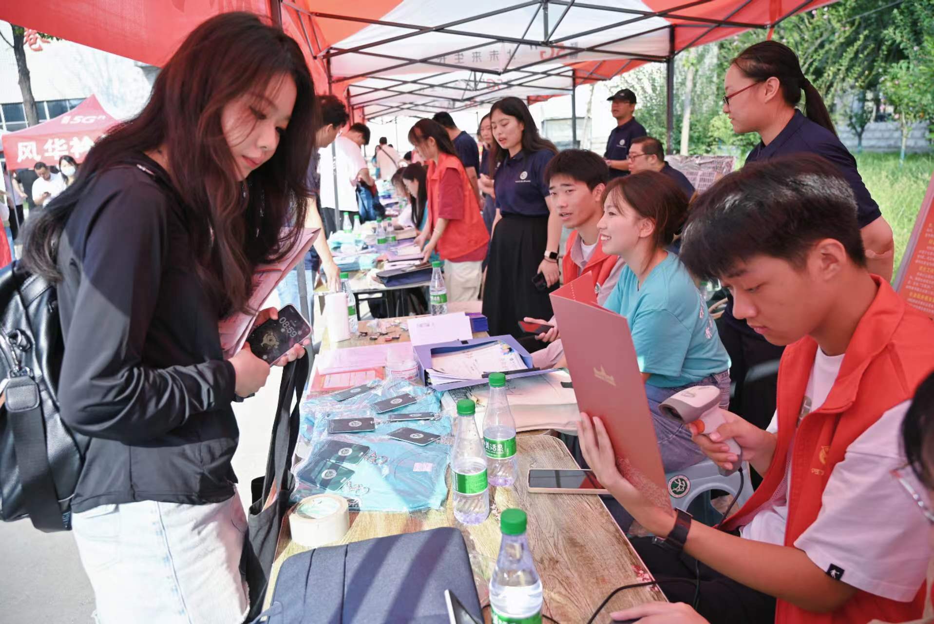 党员志愿者热情地为新生解答各种问题,新生班主任和团委辅导员与新生面对面交流,帮助新生们尽快适应新的学习和生活环境。