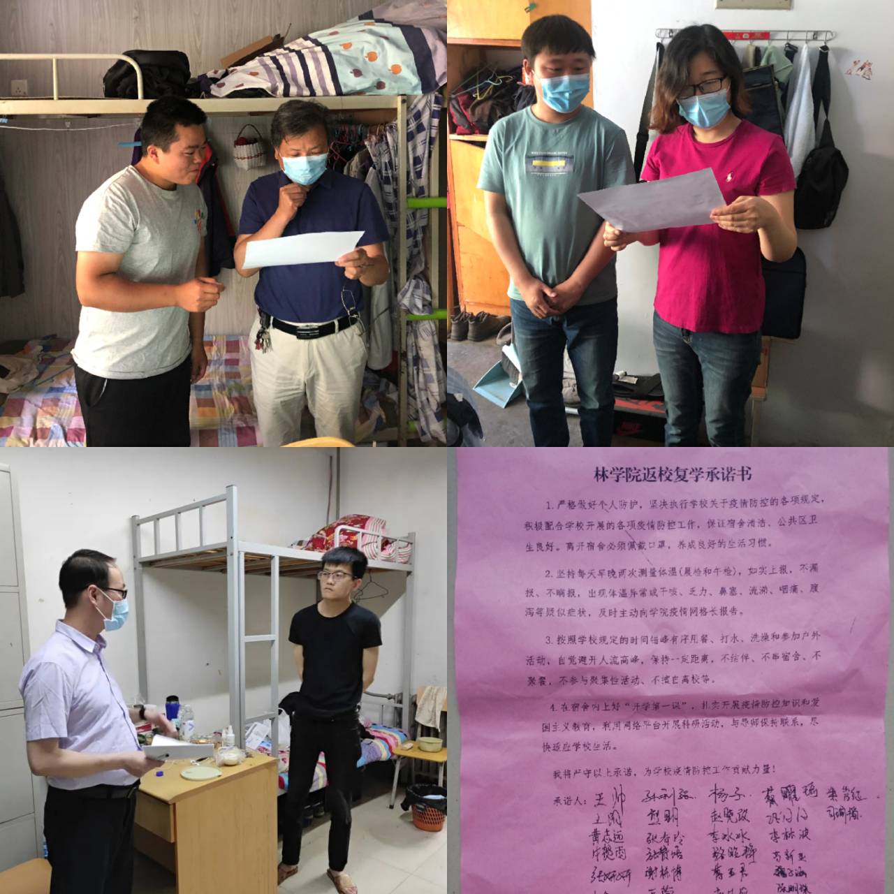 视频学习后,大家还观看了由巨乳a片 孔德政、彭万喜、闫东峰、顾海萍四位导师录制的温馨寄语,导师们的丝丝叮嘱和殷切关怀表达了对返校学子的热烈欢迎,并提醒大家保持清醒认识,坚守责任担当,坚持勤奋学习,树立报国之志。此外,研究生第二党支部书记孙利强发起《巨乳a片 返校复学学生承诺书》,全体返校学子纷纷签字承诺,并表示在校期间将自觉遵守疫情防控工作的各项安排,与学校齐心协力,共战疫情。当天,研究生导师和宿舍网格长还深入寝室,查看学生身体健康状况,与学生交流返校后的学习计划。