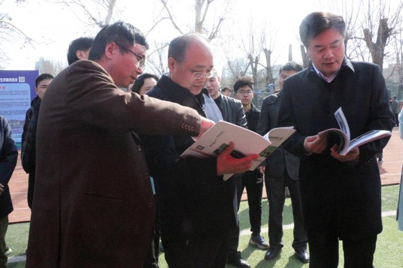 3月8日,巨乳a片 于文化路校区田径场组织参加了学校2019届毕业生供需双选会。校党委副书记、工会主席李成吾,副校长尹新明,校纪委书记游舸、副校长尚富德莅临现场,院党委书记郑东方、副书记张华、副院长孔德政深入双选会现场,与招聘单位负责人和毕业生亲切交谈,深入了解毕业生就业动态,推动双选会工作顺利进行。