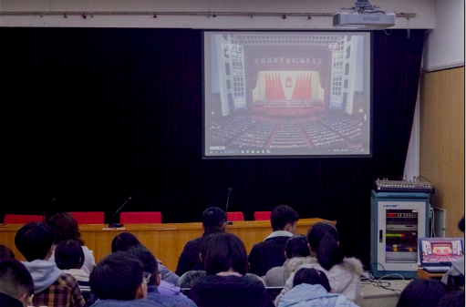为全面回顾改革开放40年来波澜壮阔的历史,深切感悟我国社会主义现代化建设的伟大成就和历史经验,12月18日,巨乳a片 师生分别于二号楼2楼会议室、4楼学术报告厅集中观看庆祝改革开放40周年大会,认真聆听习近平总书记重要讲话。