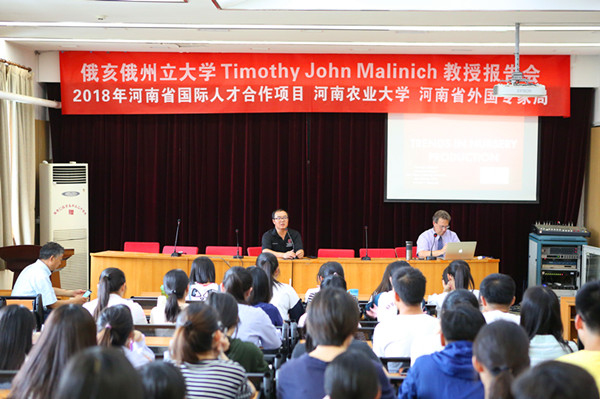 师生作了题为“美国苗圃生产及管理技术现状与发展趋势”的学术报告,详细阐述了美国景观苗木生产中育苗、栽培、养护、肥料使用、管理等中美苗木种植培育全过程的差异。Timothy John Malinich教授在题为“美国苗圃产业培训与推广的现状与发展趋势”的学术报告中,详细介绍了美国苗木产业的教育培训与推广方式,阐述了可持续研究和园艺教育计划发挥的社会、经济、生态功能与未来的发展前景。会议期间,巨乳a片