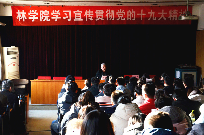 蒋建平教授结合自己的亲身经历,从五个方面阐释了自己对十九大报告的理解和体会,对青年学生提出明确要求。一是党的十九大确立了以习近平同志为核心的党中央的领导地位,党的领导是中国特色社会主义事业发展的核心,青年学生必须显著增强政治意识、核心意识、大局意识、看齐意识,坚持党的全面领导。二是党的十九大创立了习近平新时代中国特色社会主义思想,青年学生要树立正确的世界观、人生观、价值观,自觉用习近平新时代中国特色社会主义思想武装头脑。三是党的十九大确立了中国长远发展规划,制定了从2020年到本世纪中叶分两个阶段完成“两个一百年”奋斗目标的发展战略,青年学生要肩负历史使命,自觉为“两个一百年”奋斗目标的实现贡献力量。四是党的十九大提出了各行各业的奋斗目标,对生态文明建设做出了重要部署。蒋校长以创造了“沙地变绿洲,荒原变林海”人间奇迹的塞罕坝为例,结合我校长期以来在河南林业事业发展和生态文明建设中的生动实践,教育青年学生要发扬我校优良传统,为中国林业发展和生态文明战略做贡献。五是党的十九大根据新的形势对党章进行修改,要始终坚持党要管党,全面治党。青年学生党员要认真学习党章、遵守党章、贯彻党章、维护党章,共同推动中国特色社会主义伟大事业和党的建设新的伟大工程。蒋教授强调,党的十九大报告以“新”为主题,条理清晰,内容丰富,青年学生必须要认真学习,积极主动将思想和行动统一到学习宣传贯彻党的十九大精神上。