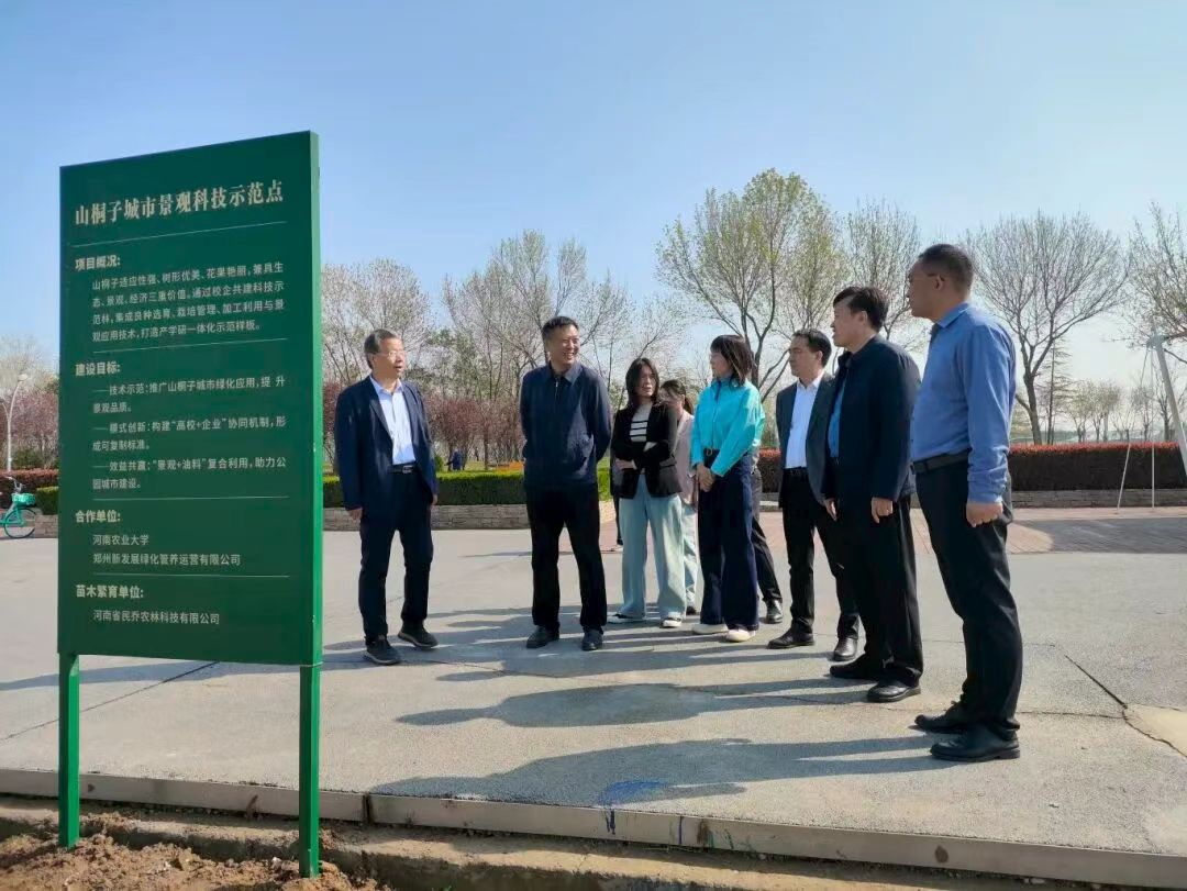 与郑州新发展绿化管养运营有限公司共建山桐子城市景观科技示范林暨生态经济型林草种质资源中试基地项目启动仪式,在郑东新区龙湖湿地公园项目基地隆重举行。郑州市郑东新区园林水务局局长马保松,郑州新发展绿化管养运营有限公司董事长范秀峰、总经理李志芳,河南省民乔农林科技有限公司总经理吕德方,学院党委书记化青报、副院长赵振利、刘震教授、李志副教授、蔡齐飞等相关人员出席活动。