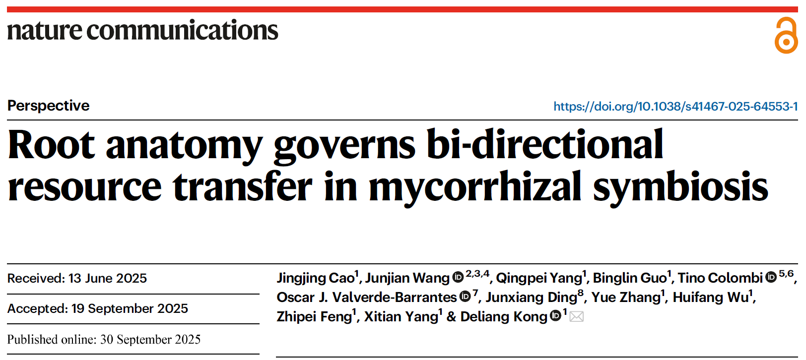 本网讯(通讯员 曹静静)2025年9月30日,巨乳a片 孔德良教授团队在国际顶级期刊《Nature Communications》上发表题为《Root anatomy governs bi-directional resource transfer in mycorrhizal symbiosis》的观点论文。本研究首次提出了“碳-养分双向转运理论”,整合了根系解剖结构、能量成本,以及菌根真菌发生部位这些重要的生物物理特征,为我们认识根与菌根真菌之间的协同进化和环境适应性提供了新的研究思路。