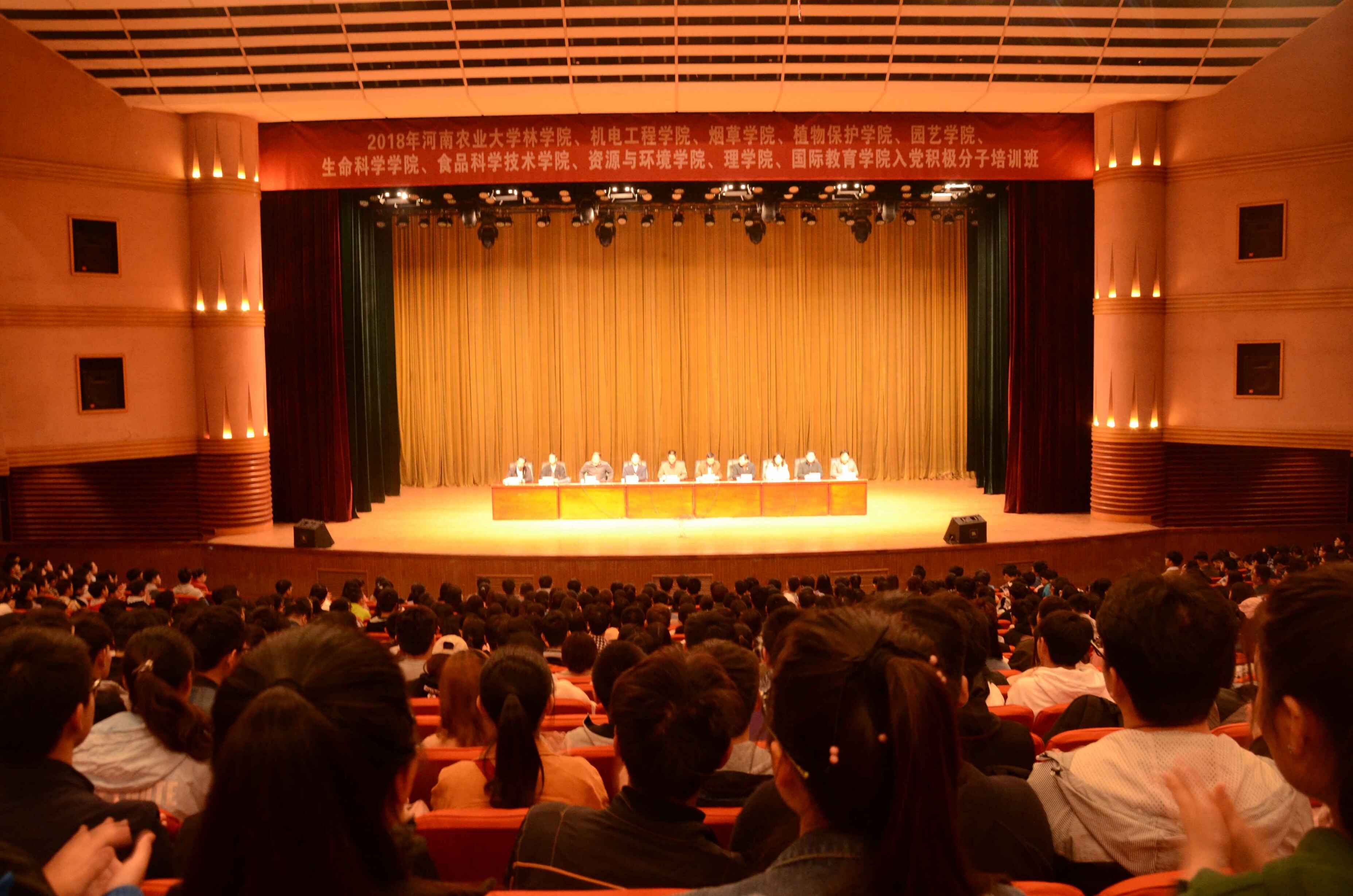 开班典礼在庄严的国际歌中拉开帷幕。耿超明宣读了《关于举办2018年河南农业大学巨乳a片 、机电工程学院、烟草学院、植物保护学院、园艺学院、生命科学学院、食品科学技术学院、资源与环境学院、理学院、国际教育学院入党积极分子培训班的通知》。侯金超发表讲话。他说,同学们主动加入中国共产党是其成长道路上做出的正确的政治选择,对积极分子进行党的基本知识集中培训,是提高入党积极分子思想政治素质和党的政策理论水平的重要途径,同时此次培训也是贯彻落实十九大和校第七次党代会精神的生动实践。他对参加培训的全体学员提出了四点希望:一是抓住重点,学习领会好党的十九大精神;二是学好要点,学习党的基本知识,深化对党的认识;三是解决难点,在端正入党动机上下功夫;四是搞好结合点,用理论指导实践,自觉将十九大和校第七次党代会精神渗透到学习生活中去,为建设以农为优势特色的高水平大学做出贡献。